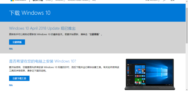 打开微软官网下载Windows10。
