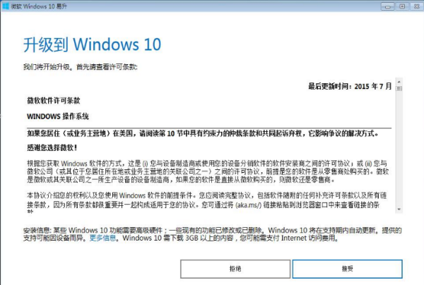 第一,下载微软推出的一个免费更新win10的工具。打开官方升级win10创意者更新的工具易升,点击”接受微软软件许可条款“。