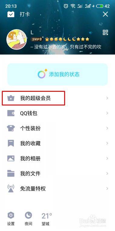 登录手机QQ最新版本,向屏幕右侧滑动,打开设置界面。在这里点击“我的超级会员”选项。