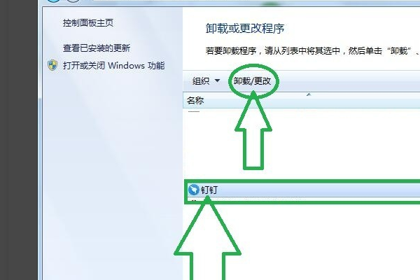 3、点击“程序卸载”,进入到卸载或更改程序页面,在卸载或更改程序的页面上可以找到“钉钉”的程序。
