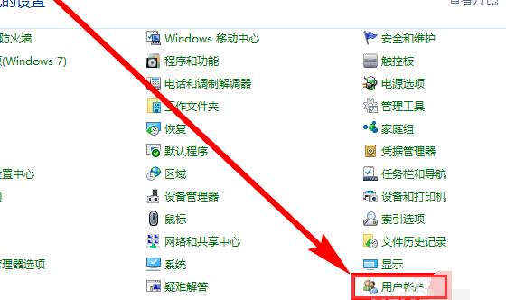 3.在【控制面板】众多的功能选项中找到并点击【用户账户】