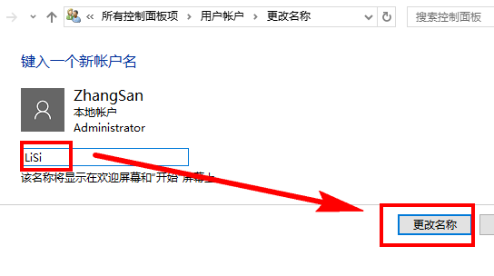 5.先在输入框中输入新用户名,然后点击【更改名称】按钮,这样我们的用户名就改好了。