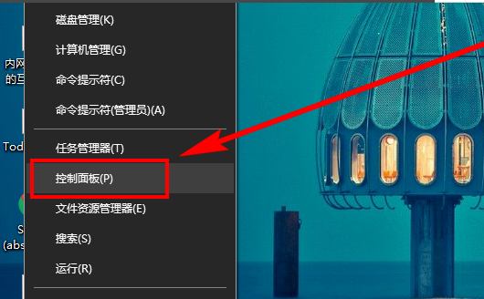 1.首先右键单击桌面左下角的【开始】按钮,选择【控制面板】