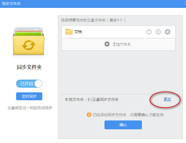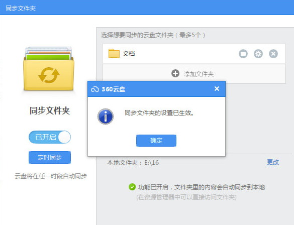 5、设置好后点击确定,我们可以看到同步文件夹的设置生效了。