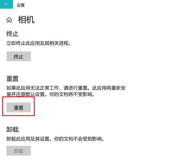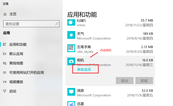 右键点击开始——应用和功能——点击“相机”——高级选项——重置。