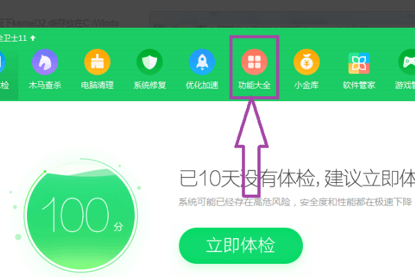 1、在正常的情况下kernel32.dll存放在C:/Windows/system32文件夹中。当出现“无法定位程序输入点于动态链接库KERNEL32.DLL”的问题时,一般来说是kernel32.dll文件有问题。
