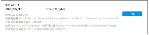 步骤4 :从华硕支援官网下载ARMOURY CRATEUWP。
