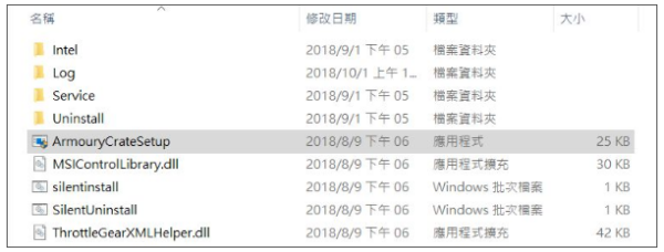 步骤2:开启ARMOURY CRATE Service档案,执行ArmouryCrateSetup。
