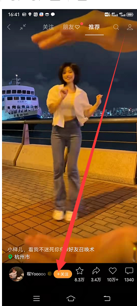 3、然后选择【关注】如下图所示: