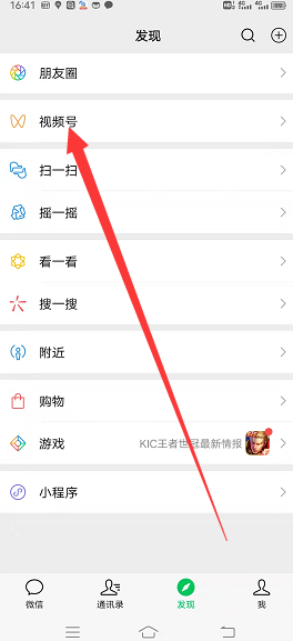 2、然后再找到【视频号】如下图所示: