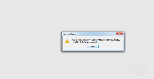 1、当低版本office保存,高版本打开可能会出现文件打不开的情况,弹出“word无法打开,因为文件格式与文件扩展名不匹配”窗口。