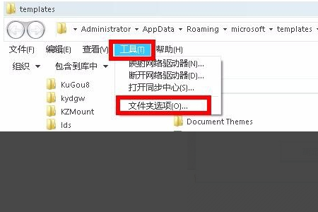 2、然后我们在弹出来的窗口中点击打开左上角工具中的“文件夹选项”。
