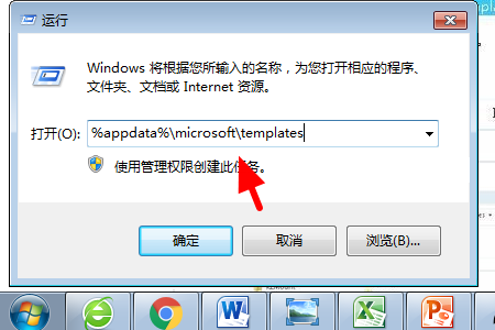 1、首先我们打开电脑,点击打开开始菜单栏中的“运行”,点击输入“%appdata%\microsoft\templates”。