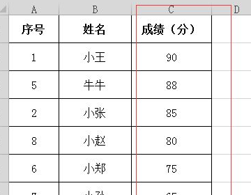 5、最后点击确定,就可以看到成绩这一列的数据已经按照降序的方式自动排序完成了。