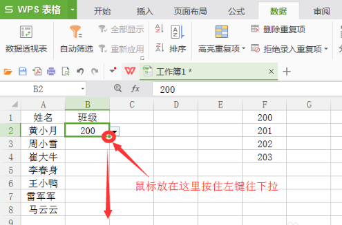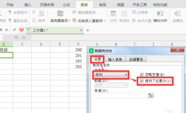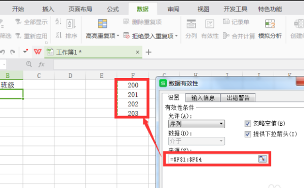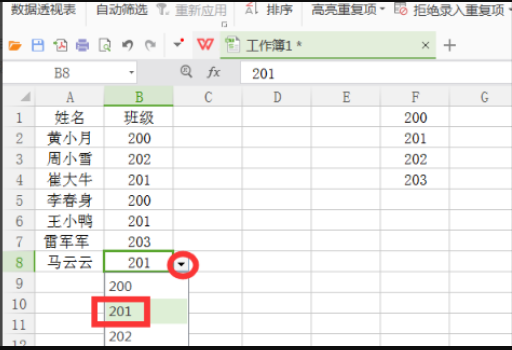 5、找到对应班级点击下,就完成了对班级的输入表格的下拉设置。