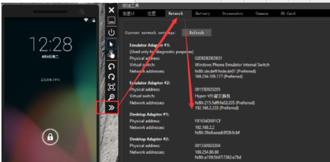 Parameters:添加adb.exe的参数,connect ip:5555;笔者的是192.168.2.233:5555。ip可以通过打开模拟器在wifi中查看,也可以在模拟器的设置中network中查看