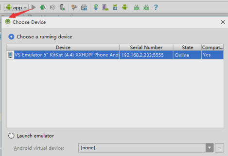 按下Run按钮(绿色箭头那个...),弹出选择Android设备的选择框: