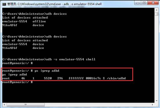 安卓模拟器调试时,可以在命令行通过哪个命令查看系统是否已经连接到一个模拟器