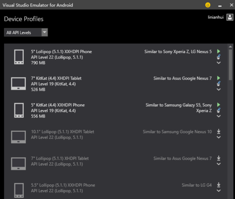 安装重启后打开Visual Studio Emulator for Android,如下所示: