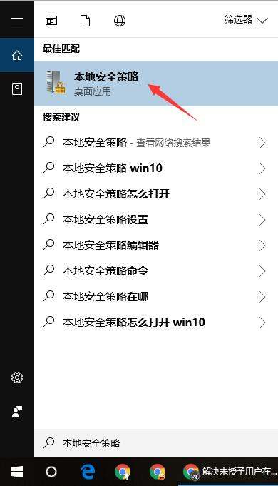 首先,点击 微软小娜 Cortana 输入本地安全策略,点击打开 本地安全策略 设置。