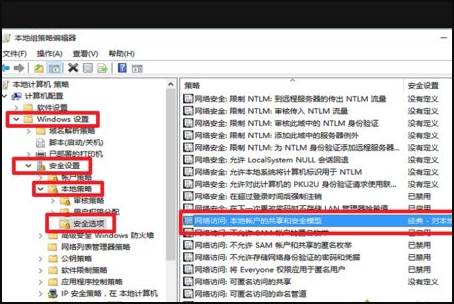 7、然后按下图路径找到本地账户的共享和安全模型,改为经典模式。