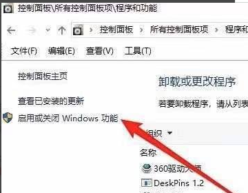 3、点击窗口左侧边栏的“启有或关闭Windows功能”菜单项。