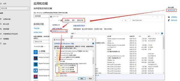 方法很简单,点击 微软小娜 Cortana 输入启用或关闭 Windows 功能(或者直接输入功能也能找到),打开启用或关闭 Windows 功能 对话框。
