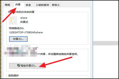 4、接下来看看共享的文件夹共享权限有没有设置,选择共享文件夹属性-共享-高级共享。