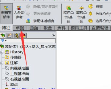 3、然后就可以选择草图,像零件图一样在零件上绘制草图。