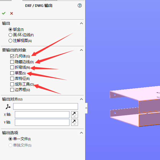 solidworks输出到DWG时草图不能输出,钣金选了草图也是一样不显示