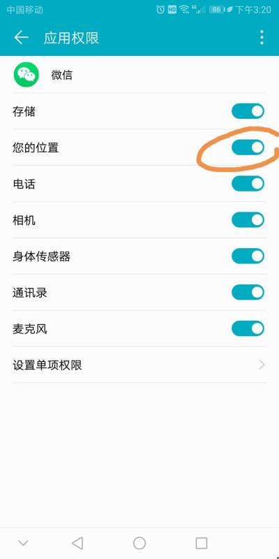 3、可能是您的手机将微信获取地理位置的权限关闭了,您可以进入手机的设置中查看是否开启了微信的地理位置权限;