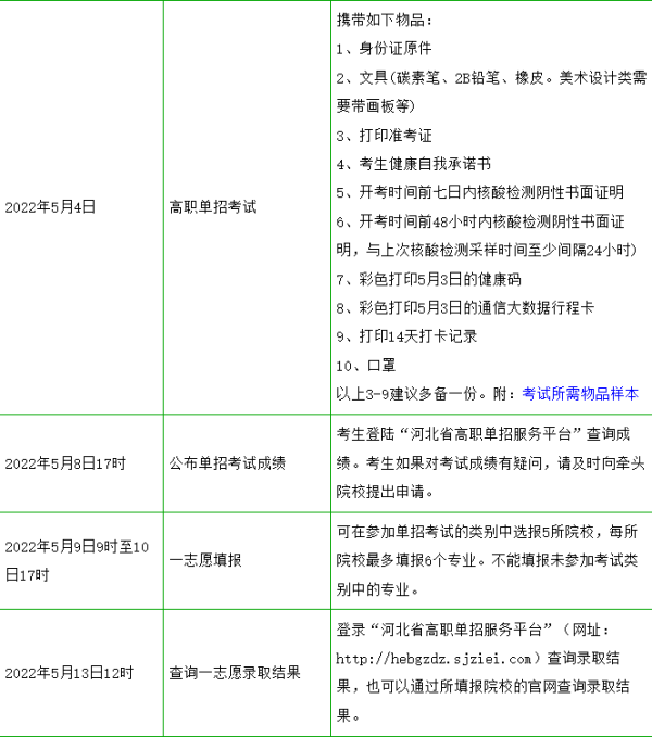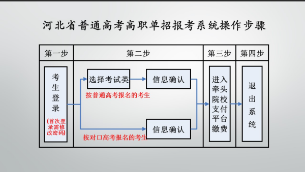 2022年3月8日9时至3月11日17时,参加高职单招的考生(含技能拔尖免试考生)登录河北省高职单招服务平台进行报考和选择考试类,并向对应的牵头院校缴纳考试费。使用学考成绩及对口专业考试成绩进行折算的科目不需缴费。