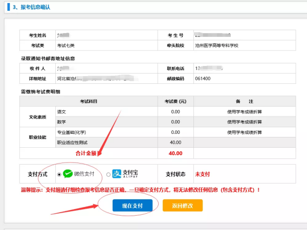 1.确认报考信息,选择支付方式,以微信支付为例。