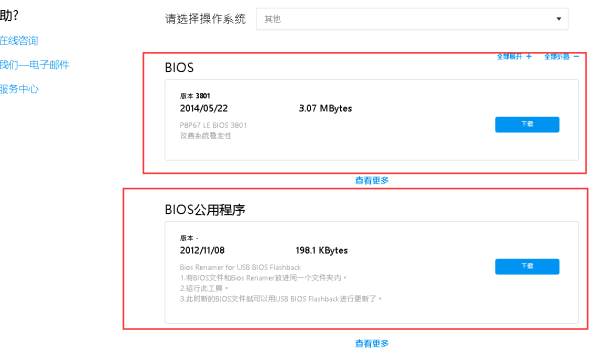 2、下载相应的BIOS更新工具(共用程序)及BIOS固件(最新版本的BIOS)。