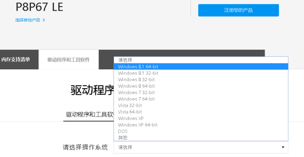 1、在华硕官网找到对应型号的主板,并选择相应的操作系统。