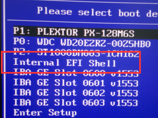 8、把U盘插到主板,然后开机,按F2键,选择从主板shell启动,然后根据提示,进行更新就可以了。