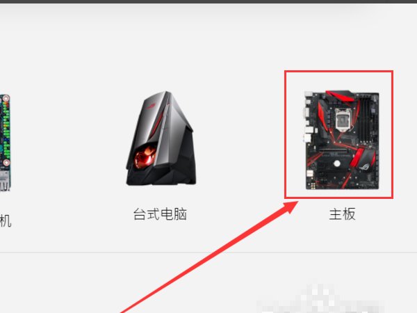 4、进入“服务与支持”页面后,点击选择“主板”。