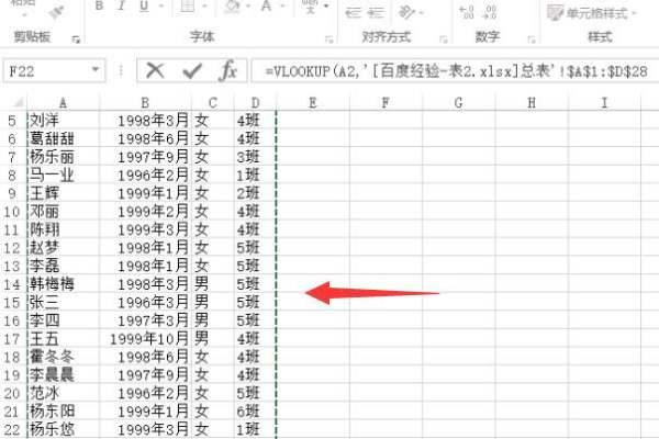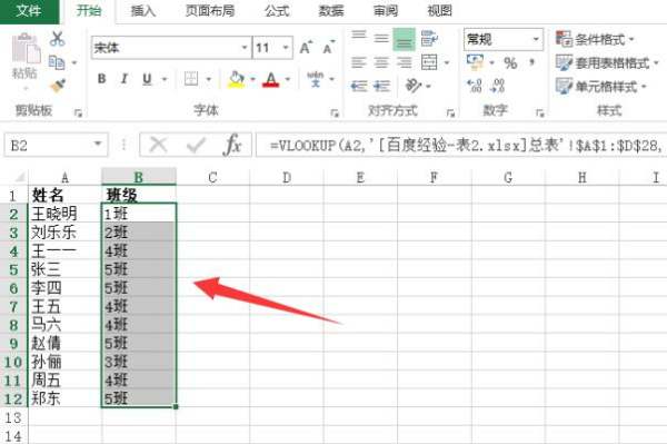 第七步:要引用第几列的班级信息,在公式中再输入几,直接按回车键即可。