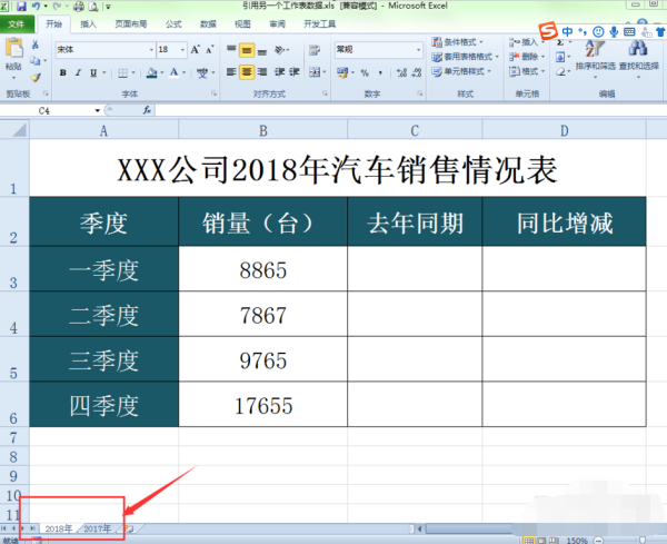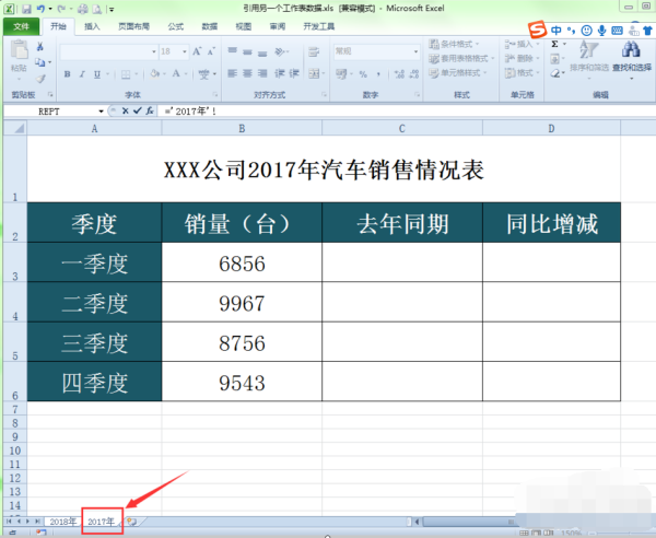 3、现在要引用“2017年“工作表中的数据,所以用鼠标单击“2017年”这个工作表的标签。