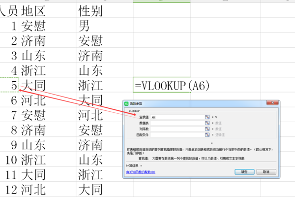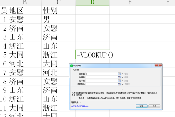 4、我们选择第一个vlookup函数,然后单机确定按钮,进入函数参数对话框。