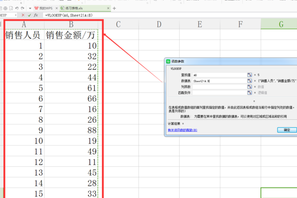 5、因为我们要查找销售人员5的销售额,所以在查找值中输入a6。