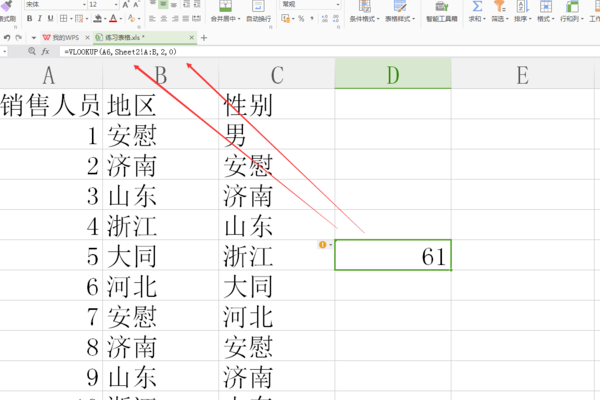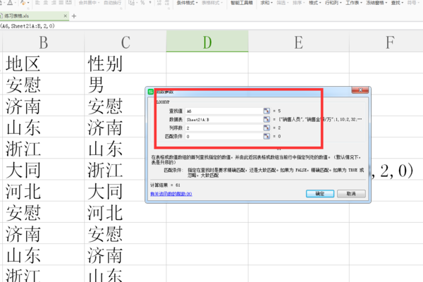 8、单击确定按钮,金额就已经显示了,61,我们可以和sheet2对比一下,数据是完全一致的。
