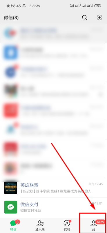 步骤二:进入微信主页面,点击右下方的“个人中心”,如图。