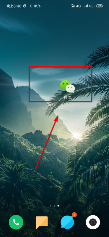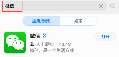 在桌面上找到微信图标点击即可打开,当手机上没有微信应用,可以在应用市场中搜索下载微信。如下图: