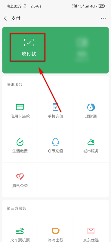 步骤四:在“支付”页面,点击“收付款”选项框,如图。
