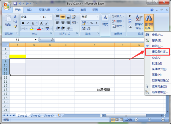 1.选择需要填充的单元格,之后在“开始”选项卡上,选择“定位条件”;