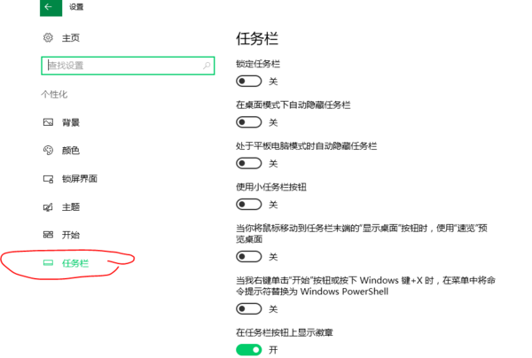 1,打开Win10“设置”,依次进入“系统 – 个性化-任务栏”,界面如图: