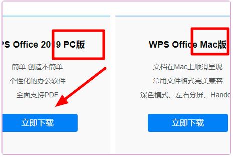 2、可以在官网首页看到每个版本的WPS,选择适合当前操作系统的WPS进行下载,以windows操作系统为例,选择PC版本的WPS进行下载;