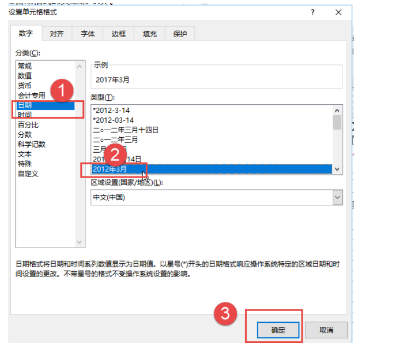 (1)然后在日期格式类型下选择XX年XX月的格式,最后点击确定