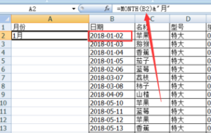 2、在增加的一列中输入=MONTH(日期列行号)&“月 ”即可获取日期的月份和月字的拼接字*月